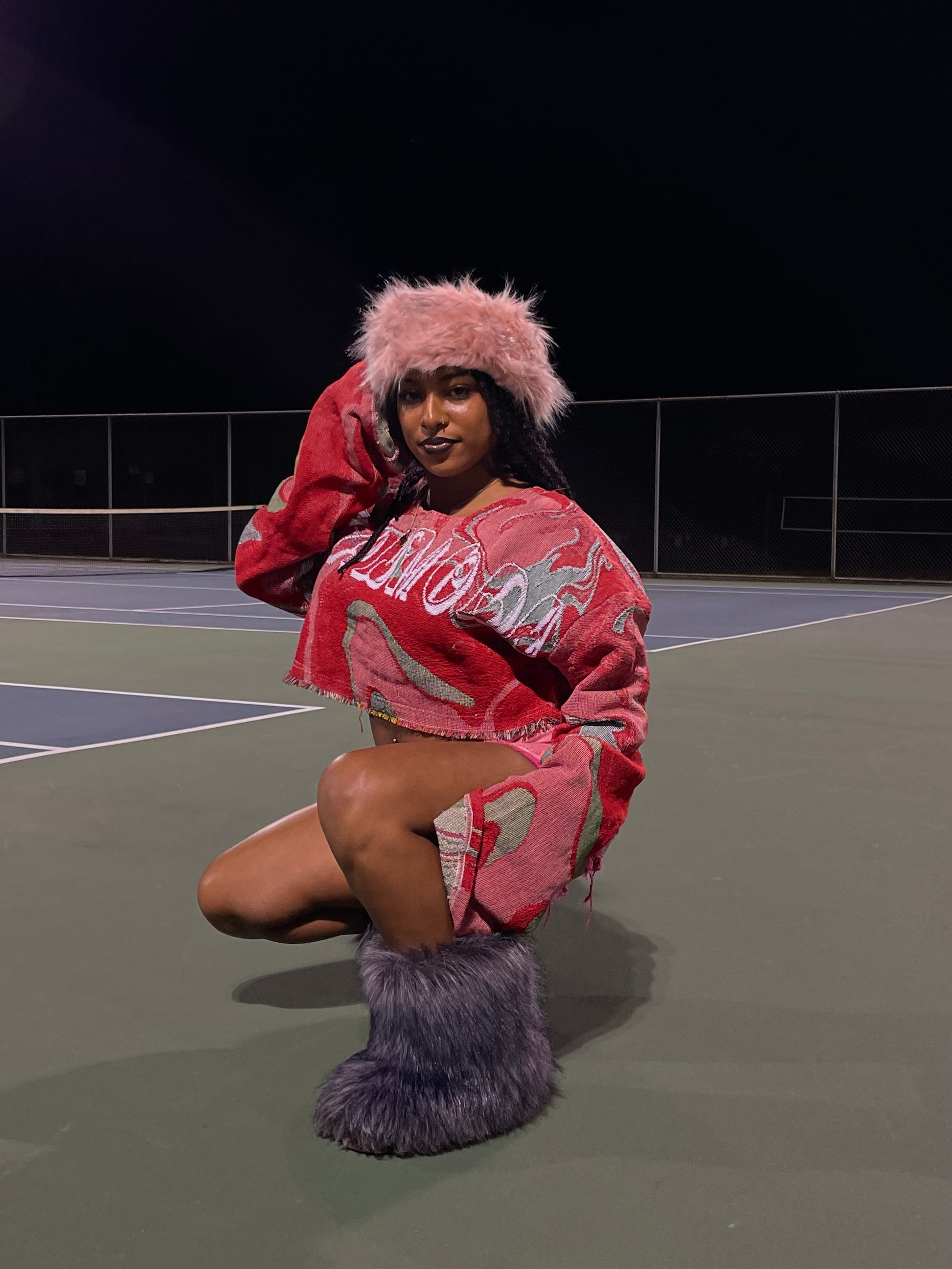 This unique woven tapestry is the perfect statement piece for your closet! The tapestry is the perfect material for insulation, but the cropped feature makes it perfect for almost every season.